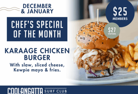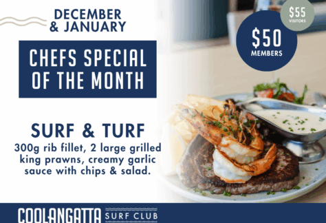 When it comes to waterfront dining in Coolangatta, Cooly Surf Club is the locals’ choice for a memorable meal with stunning ocean views. Watch whales and dolphins play in the surf from our balcony, and let the sound of waves washing over Coolangatta Beach set the scene at the Gold Coast’s best beachfront bistro.