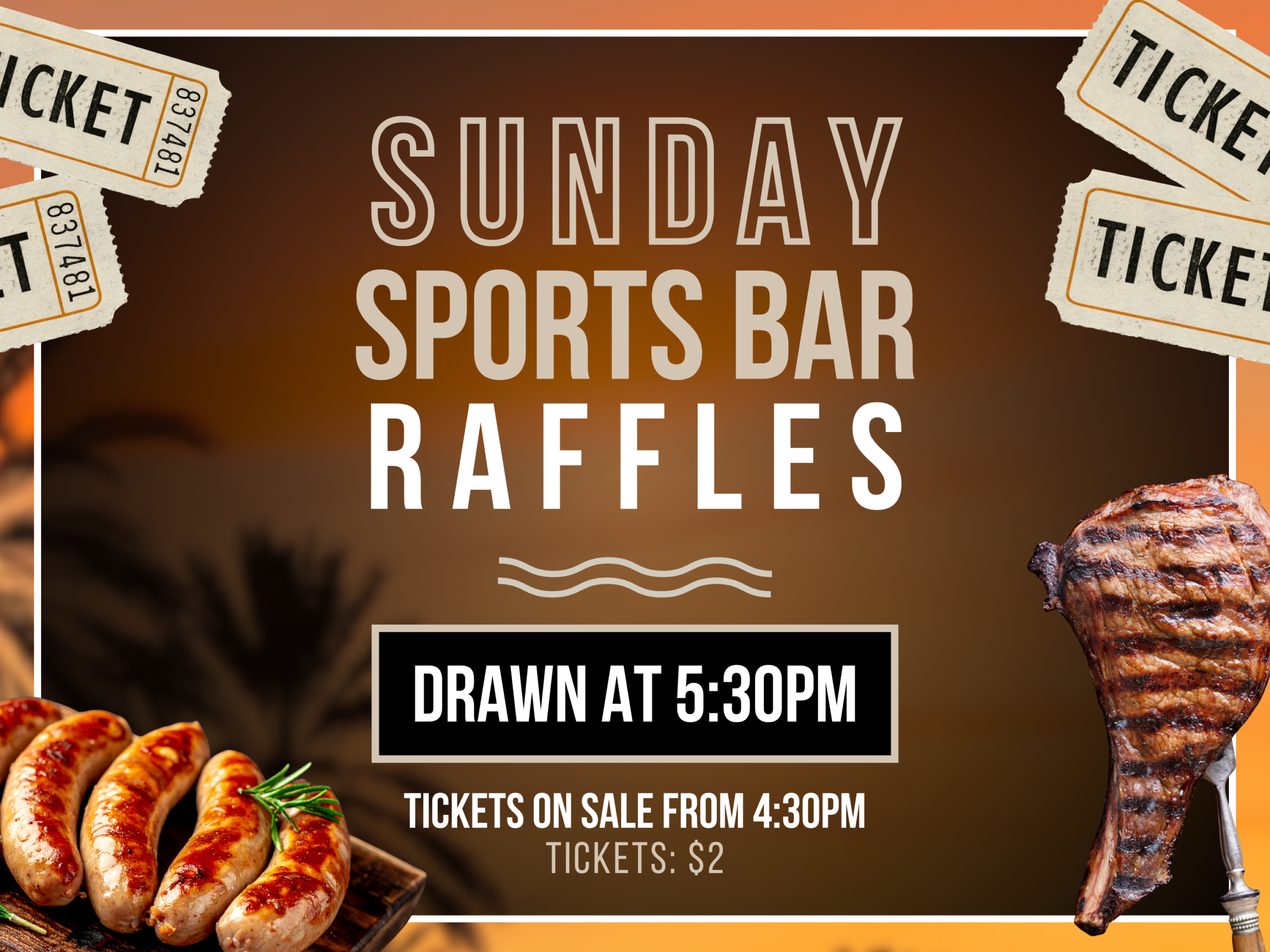 Join us every Sunday in the Sports Bar for the Sunday Sports Bar Raffles.